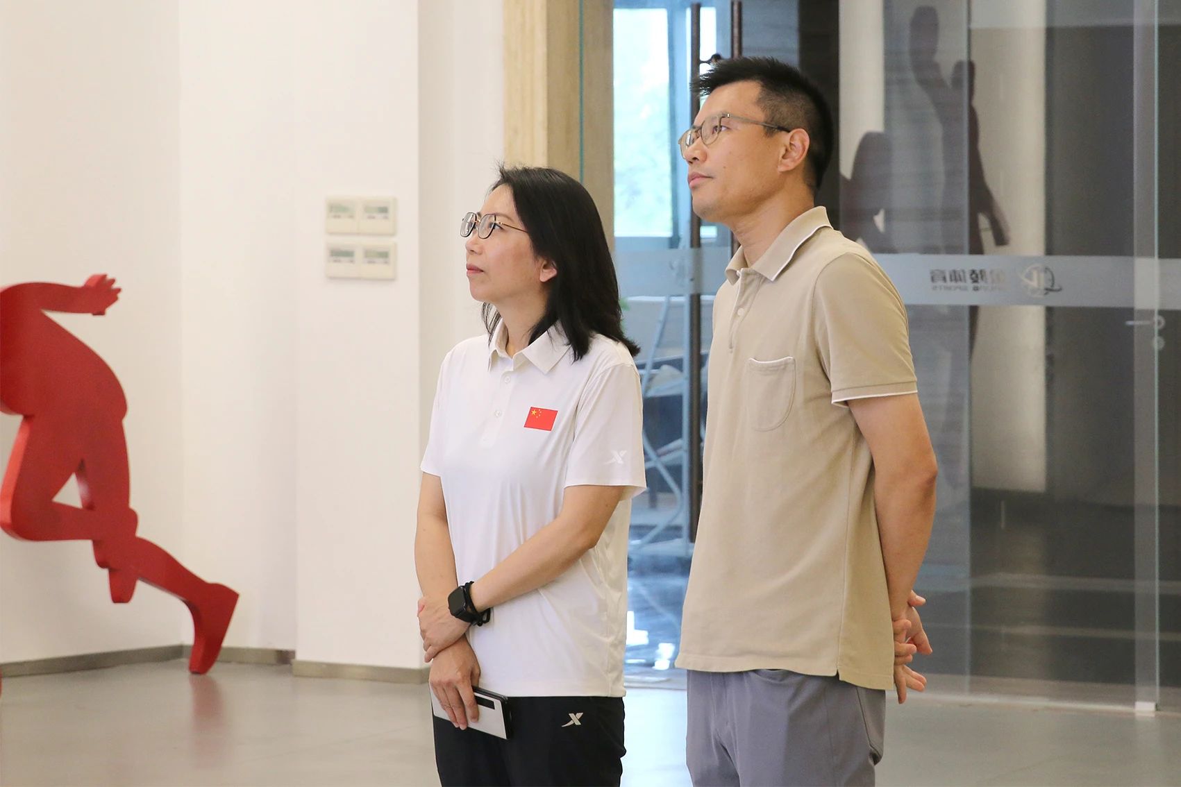 8月15日下午,參加中國(guó)田徑協(xié)會(huì)第十屆標(biāo)準(zhǔn)與認(rèn)證委員會(huì)2024年年中工作會(huì)的領(lǐng)導(dǎo)和委員來到金陵體育參觀交流,公司總經(jīng)理李劍剛和副總經(jīng)理趙育龍全程陪同。期間,一行人參觀了公司的數(shù)字化展廳、實(shí)物展廳、智能化車間、檢測(cè)中心和光電部田徑器材展示區(qū),總經(jīng)理李劍剛介紹了公司近年來取得的工作成果和未來的發(fā)展方向。各位領(lǐng)導(dǎo)和委員對(duì)于金陵體育所做的工作給與了充分的肯定。